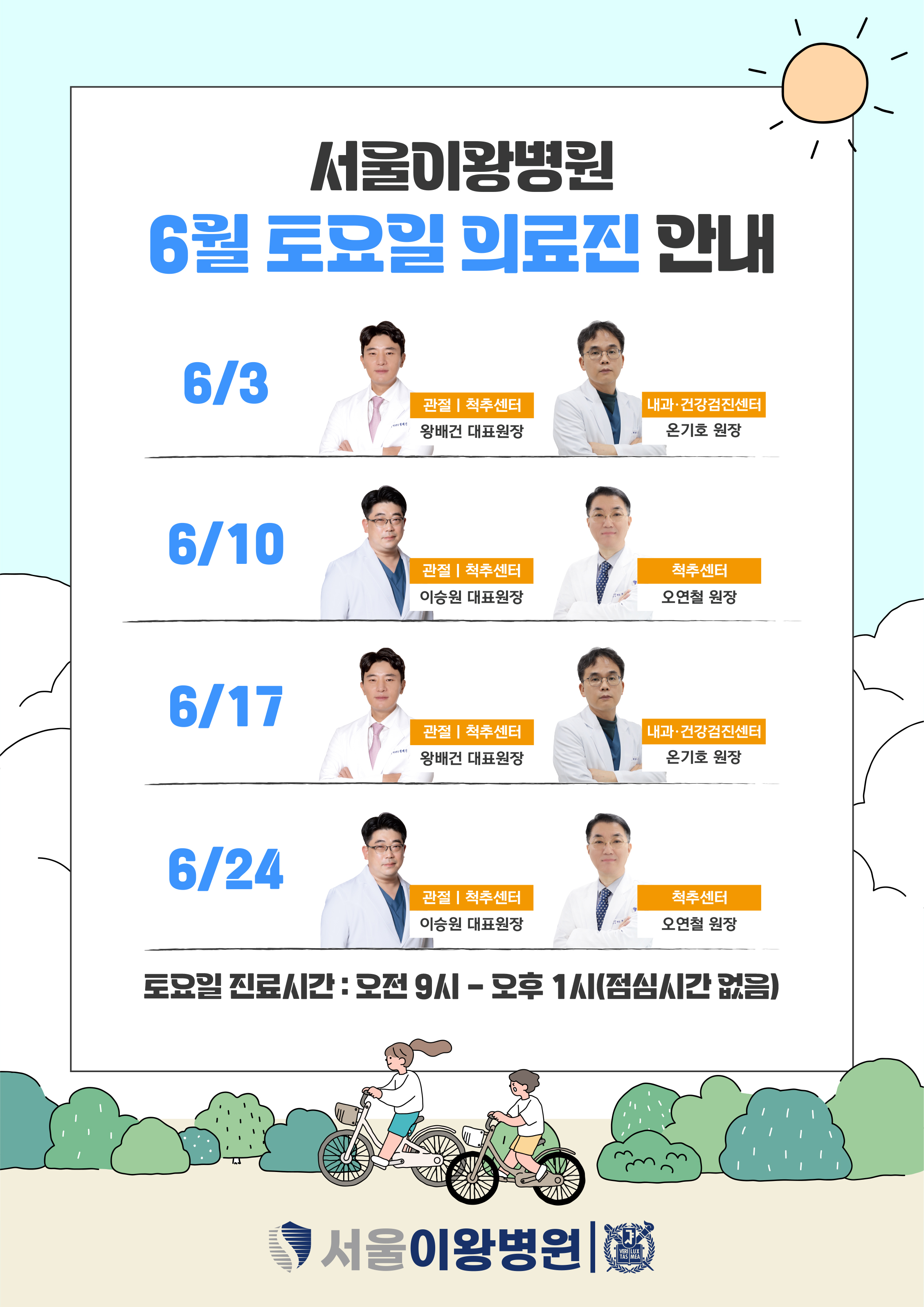 6월 토요일 진료 의료진 안내드립니다!