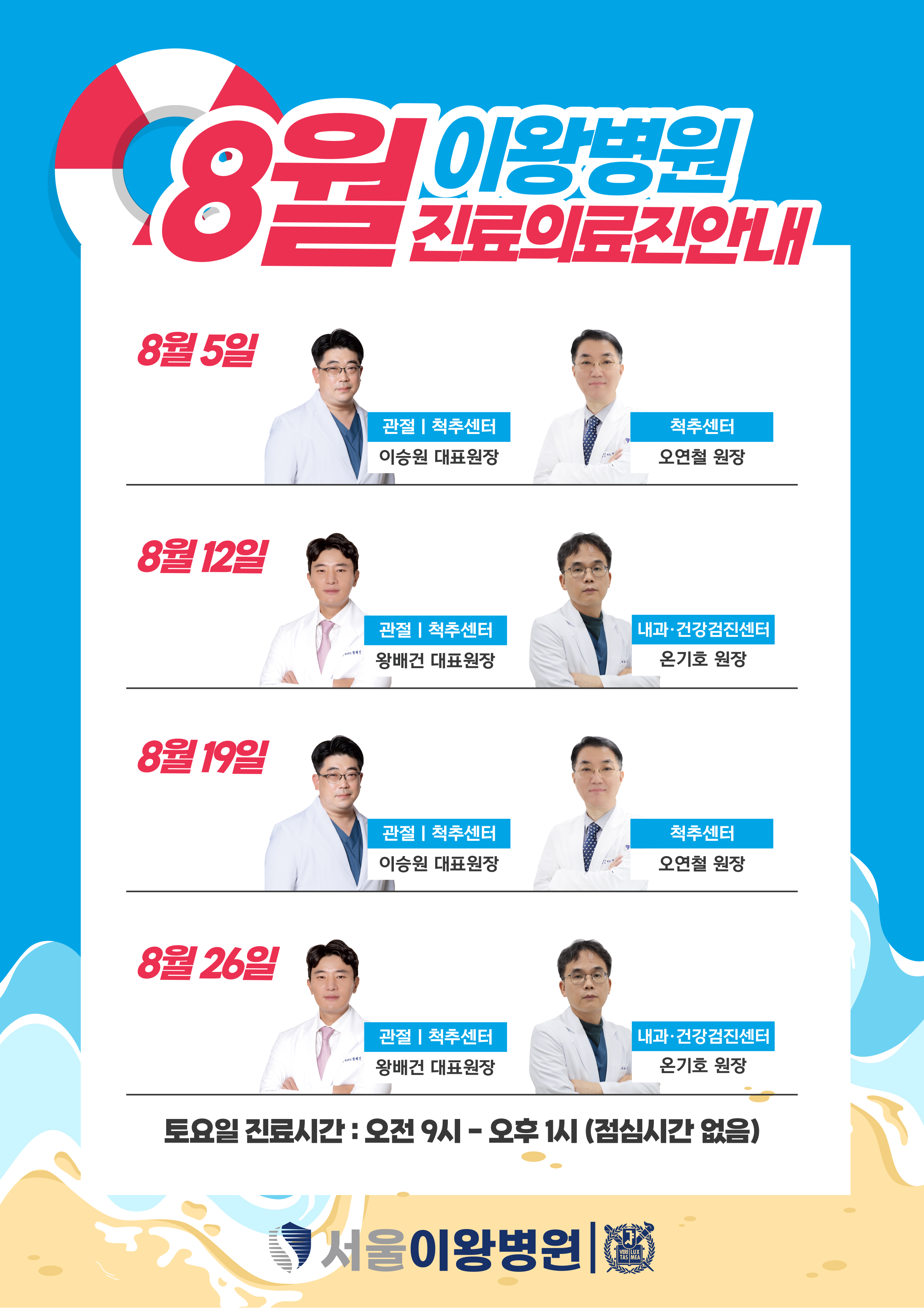 8월 토요일 진료 의료진 안내드립니다.