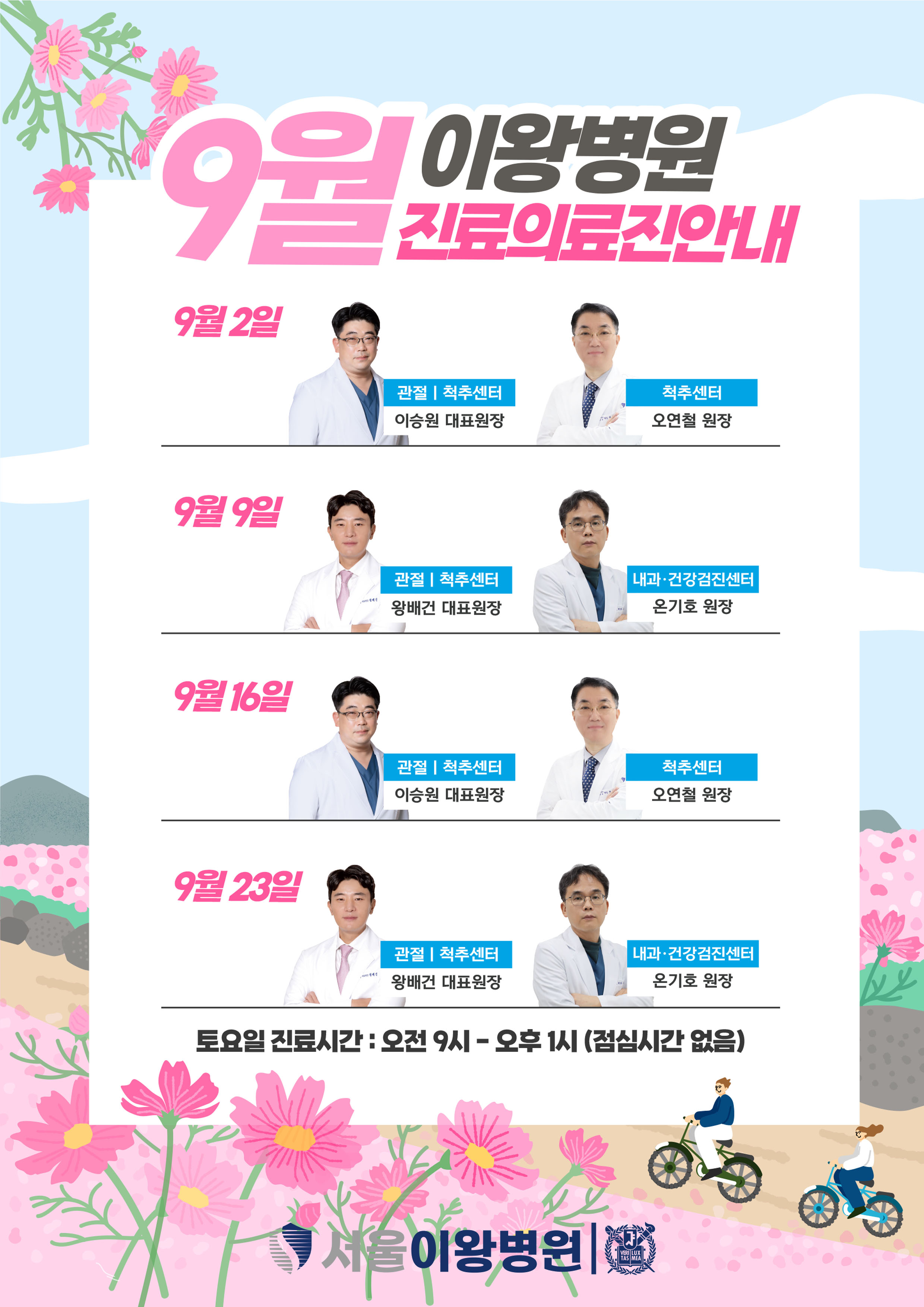 9월 토요일 진료 의료진 안내드립니다.