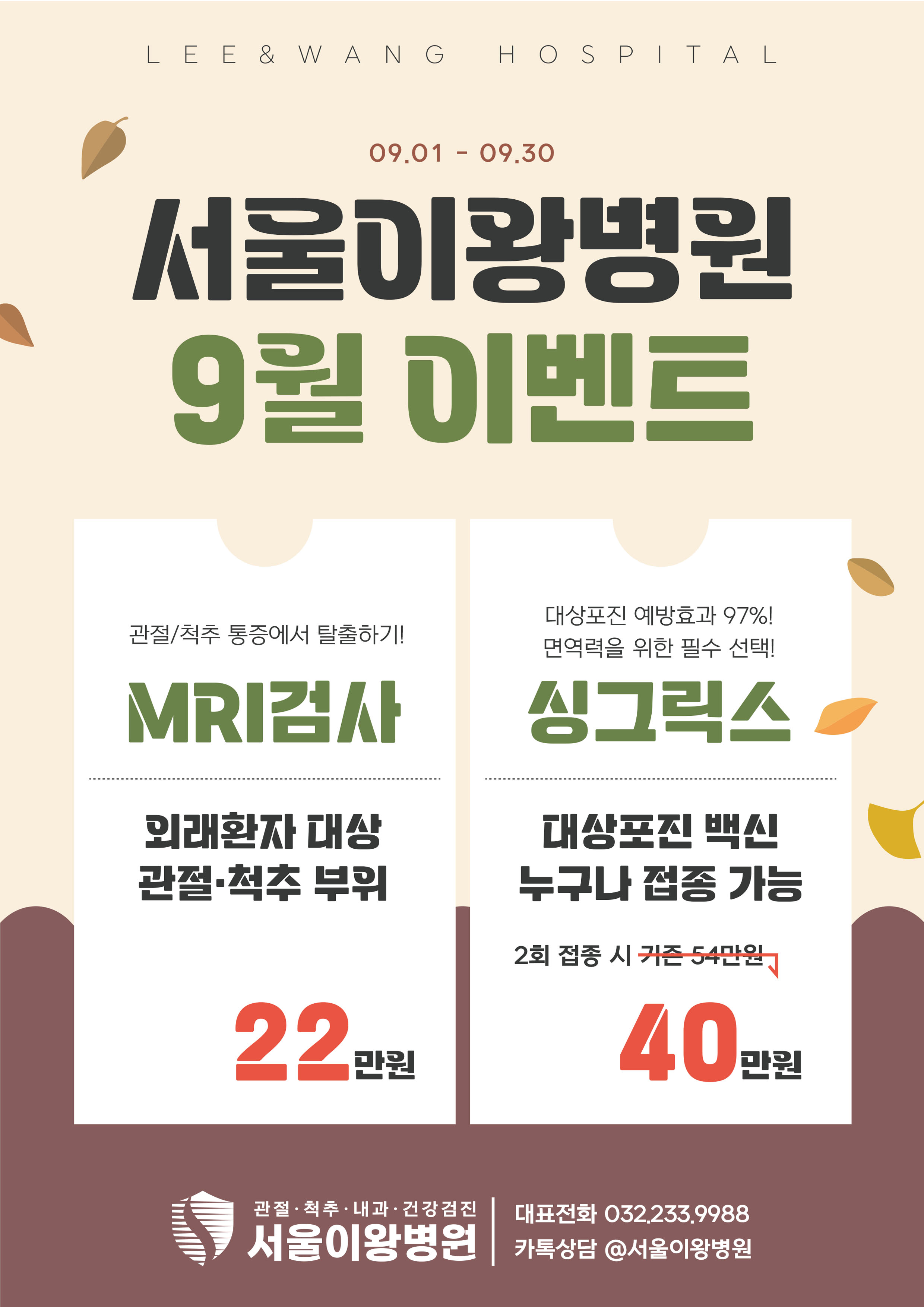 가을 맞이 이왕병원의 9월 이벤트 안내드립니다.