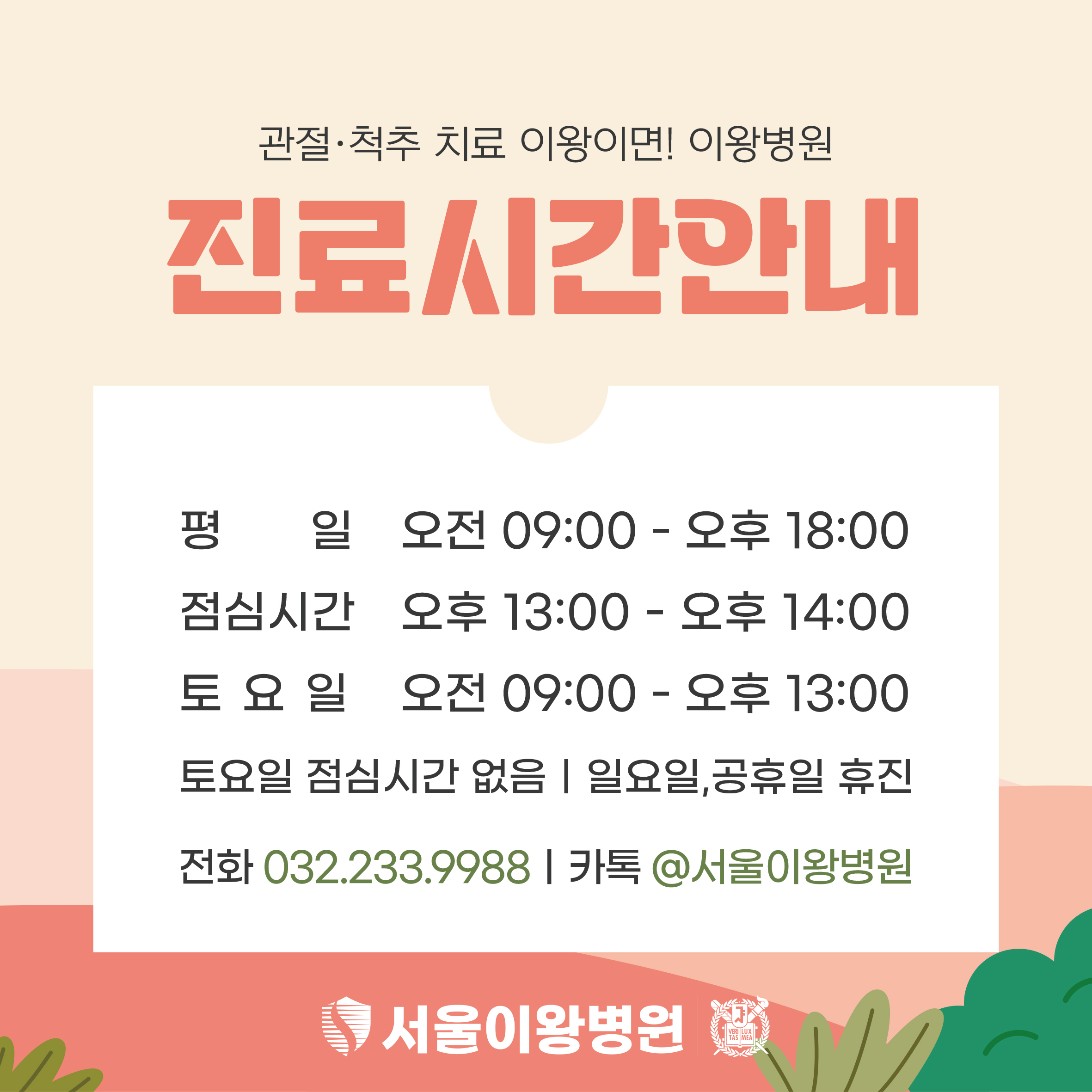 문의) 전화 032-233-9988 / 카톡 @서울이왕병원