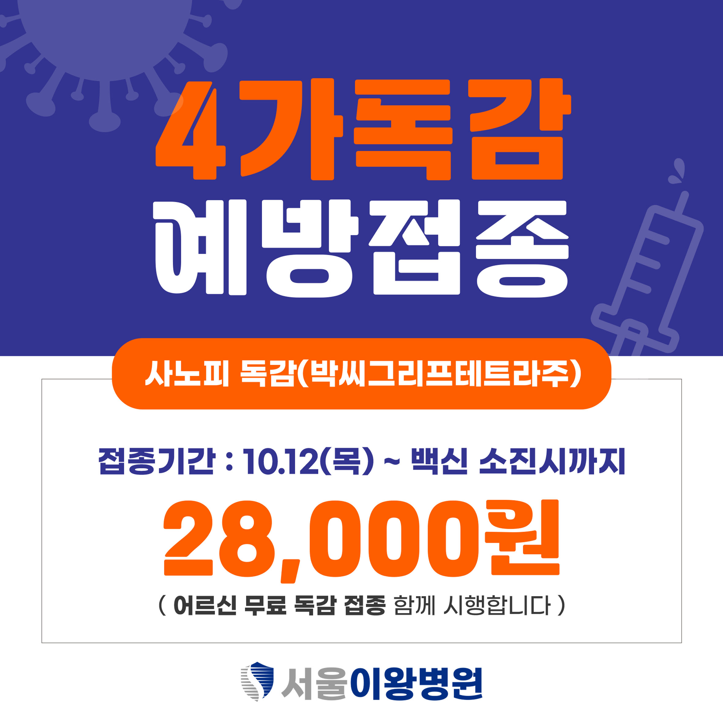 프랑스 수입 완제품 사노피 독감백신(박씨그리프테트라주) 4가 백신을 보유하여 접종을 진행합니다.