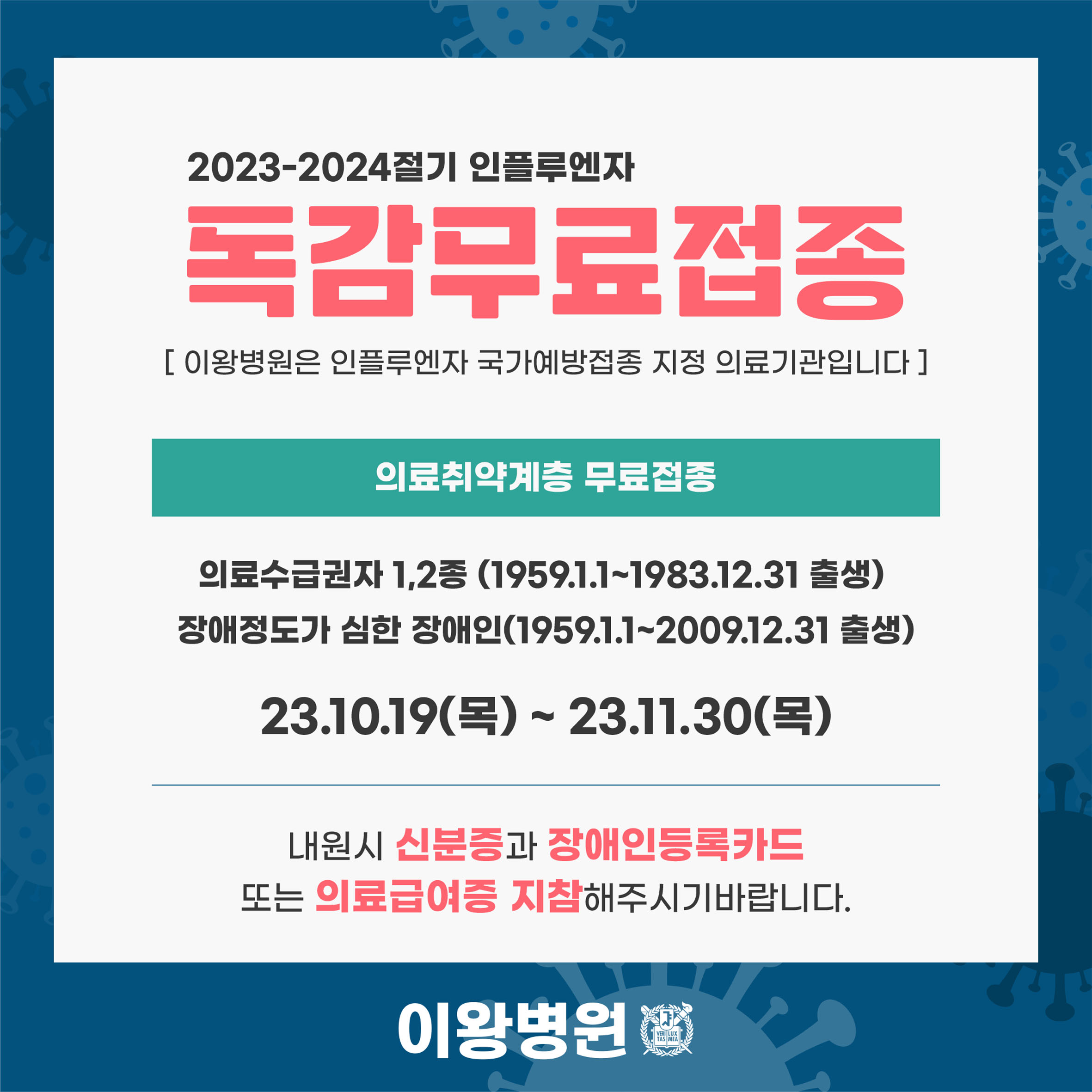 인플루엔자 국가예방접종 지정의료기관 이왕병원